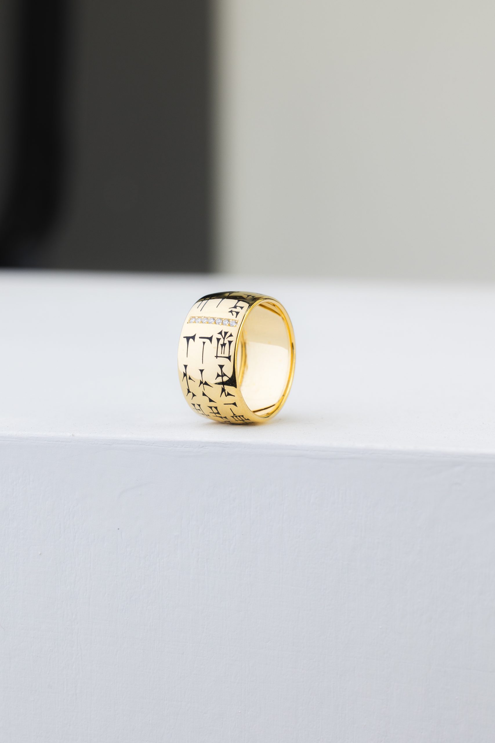 18k yellow gold ring with a Mesopotamian inscription.